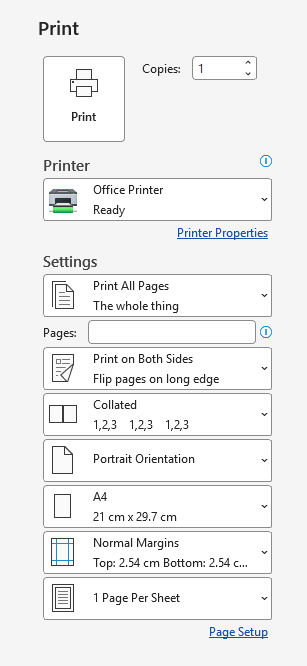 Printer Dialogue Box3. Select the printer 'Office Printer'